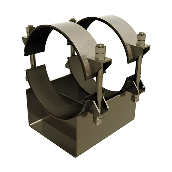 - Конструкция состоит из несущего основания и двух хомутов, которые надежно скрепляются стягивающими болтами, обеспечивая фиксацию без сдавливания и повреждения заводской изоляции.